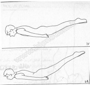 دقت نمایید که ستون فقرات راست باشد.هم چنان به پشت دستها خیره شوید..