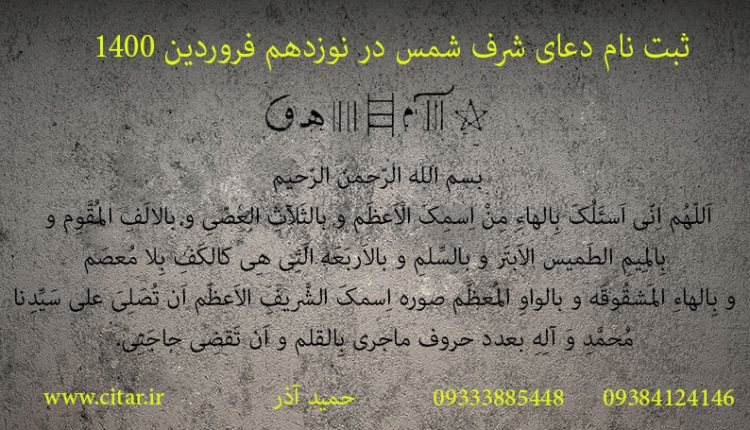 ثبت نام دعای حرز شرف شمس در سال ۱۴۰۱