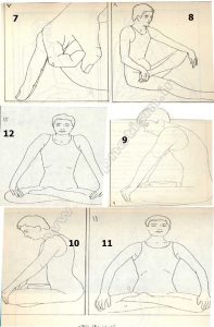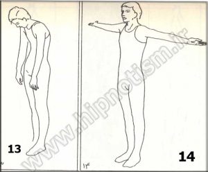 ۱۶- آهسته دستها را پائین آورده و به شکل تصویر شماره ۱۳ آویزان نموده و همزمان هوا را از ریه ها خارج نمائید. این حرکت را بدون وقفه پنج بار انجام دهید، سپس به حالت چهار زانو نشسته و دوباره حرکت تنفس کامل را که قبلا آموخته اید انجام داده و تا روز بعد به تمرینات «یوگا» نپردازید.