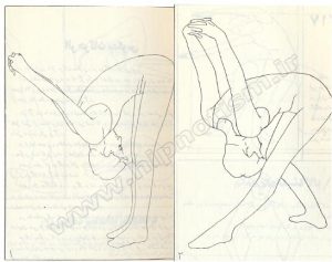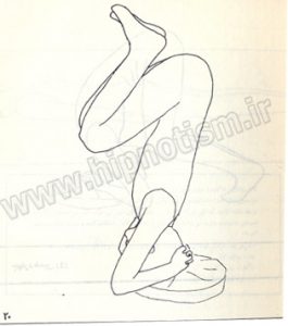 ۲۰- با دقت در حالی که زانوها روبه‌روی سینه، دستها  پشت سر و وزن بدن روی سر قرار دارد، به شکل  تصویر بر پنجه‌های پا فشار آورده و  از زمین بلند کنید و به شکل تصویر شماره ۲۰ در آورید.