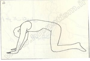 ۲۱- پنج بار  آنچه را که قبلاً آموخته‌اید در حالت چهار زانو انجام دهید. توجه  داشته باشید که:
