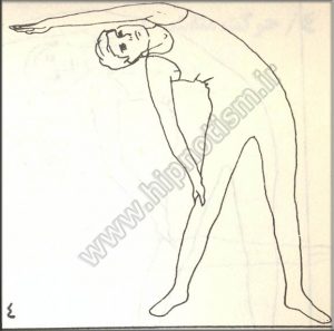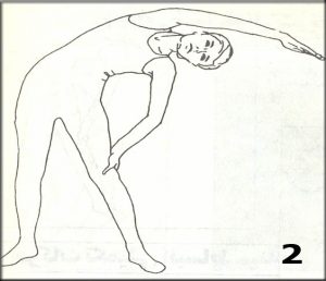 ۴-در کمال آرامی همین حرکت را با سمت راست بدن انجام دهید. دقت کنید زانوها و آرنج دست چپ خم نشود. پس از پانزده ثانیه توقف آهسته به حالت قائم برگردید آرام بازوها را پائین آورده و پاها را به یکدیگر بچسبانید. راحت باستید تا بدن شما استراحت کند وآماده تمرین بعدی گردد.
