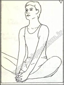در حالیکه راست نشستهاید، بی حرکت بیست ثانیه توقف کنید. رفته رفته فشار روی پاها را کم کنید، تا زانوها بالا بیایند. حال این حرکت را بار دیگر تکرار کنید و سپس پاها را از یکدیگر به طرف جلو باز کند و آماده تمرین بعدی گردید.
